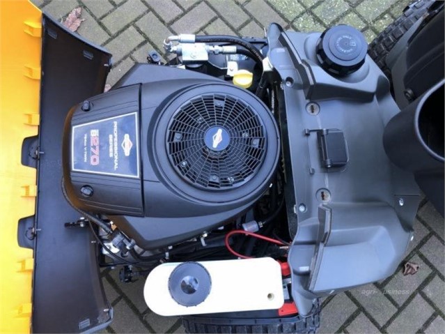 Moteur Briggs & Stratton 2 cylindres, direction assistée hydraulique, traction intégrale, direction articulée, siège confort, entraînement hydrostatique, élévateur d’équipement hydraulique, phares à LED, tondeuse: 125 cm, hauteur de coupe: 25-90 mm, 3 couteaux, réglage électrique de la hauteur de coupe, cadre robuste